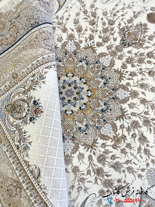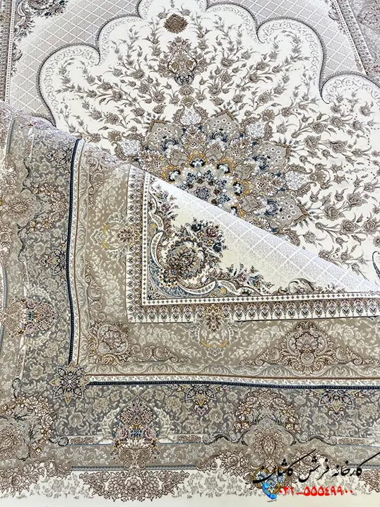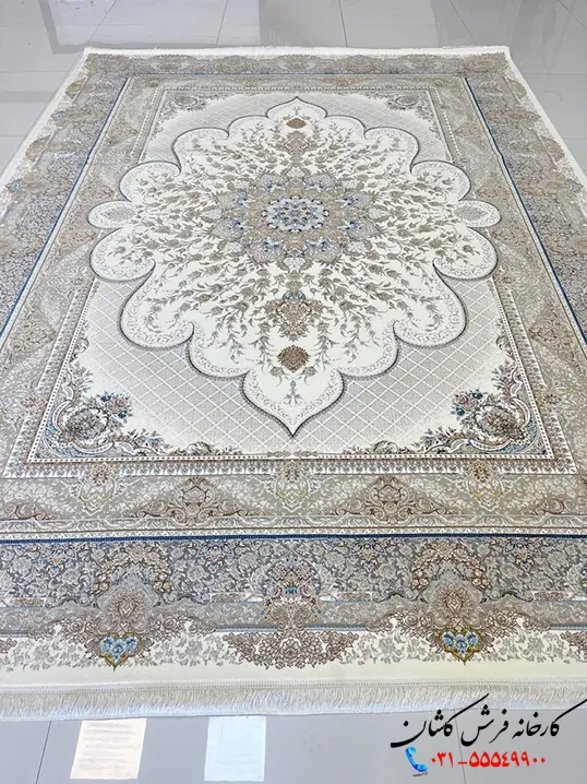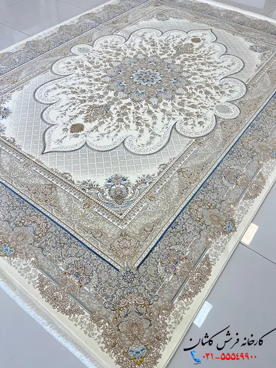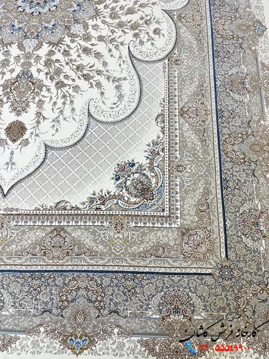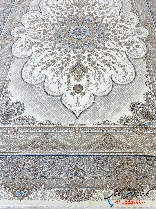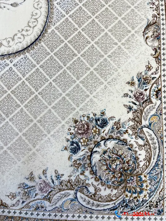 فرش سفید طلایی ۱۲۰۰ شانه طرح نقره