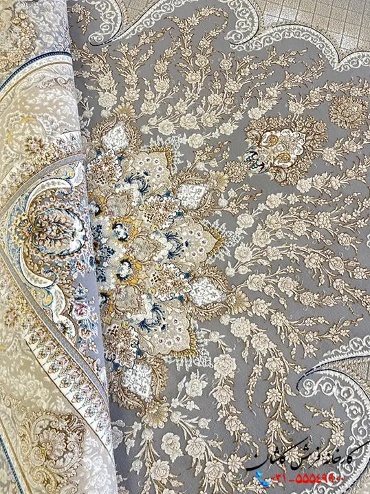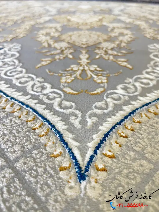 فرش نقره با طرح اصیل فرش ایرانی یعنی یک ترنج بزرگ و ظریف طراحی شده است. گلهای فرش چه در مرکز فرش و چه در حاشیه با ظرافت بالایی به صورت برجسته بافت شدهاند. رنگهای این فرش شامل فیلی، نقره ای، طلایی و کمی هم کرم است. فرش فیلی طلایی در مقایسه با فرش فیلی جلوه گرمتری دارد، طلایی رنگی گرم و سلطنتی است و به خوبی با طرح درشت ترنج هماهنگ شده و فضایی اصیل و دلباز را در پذیرایی ایجاد میکند.