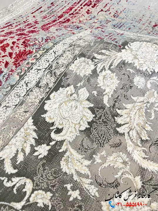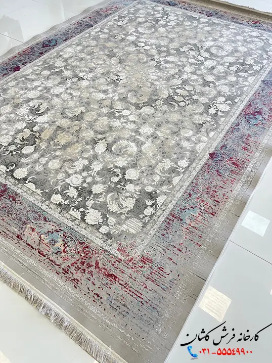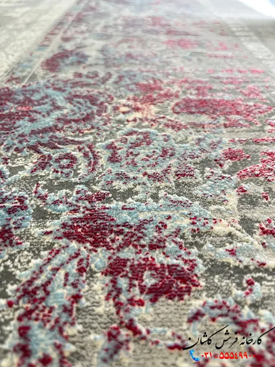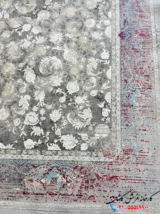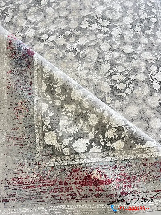 طرح این فرش که به نام نسیم شناخته میشود، از نقوش سنتی مثل گل و بوتههای اسلیمی تشکیل شده که با تراکم ۱۵۰۰ شانه بافته شده است تا جزئیات طرح واضح باشد. در این مدل، بخشهایی از نقوش به سبک پتینه یا همان کهنهنما طراحی شدهاند تا ظاهر فرش یکنواخت نباشد و حالتی سایهروشن پیدا کند. رنگ زمینه عمدتاً از طیفهای خنثی مثل خاکستری و نقرهای انتخاب شده است، اما در قسمت حاشیه، از رنگ لاکی (قرمز) استفاده شده تا تضادی معمولی ایجاد شود و فرش از بیرنگی کامل خارج شود. حاشیهها هم به جای داشتن خطوط خیلی تیز و جداگانه، حالتی محو دارند که باعث میشود کل کار یکپارچه به نظر برسد و با چیدمانهای مختلف به راحتی هماهنگ شود.