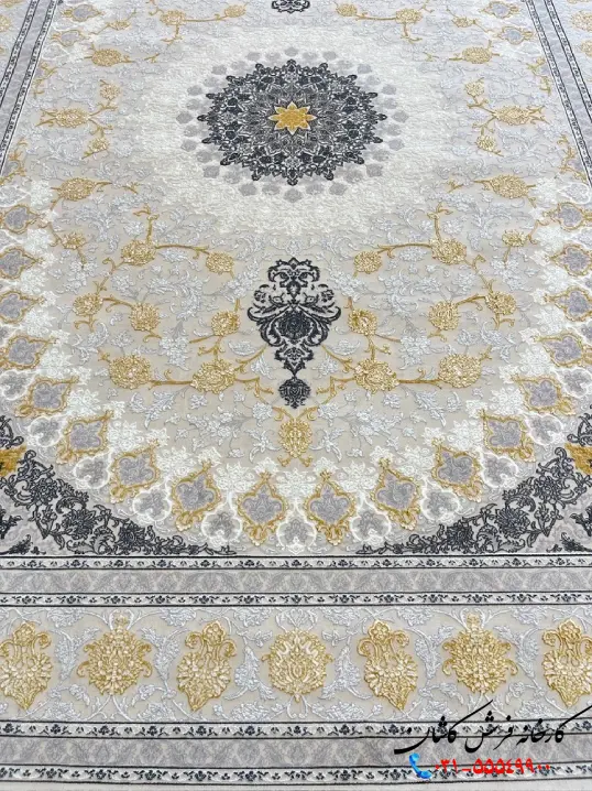 فرش کرم طلایی گل برجسته 700 شانه طرح آراگل