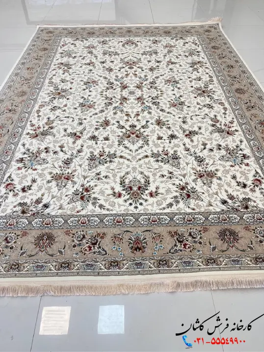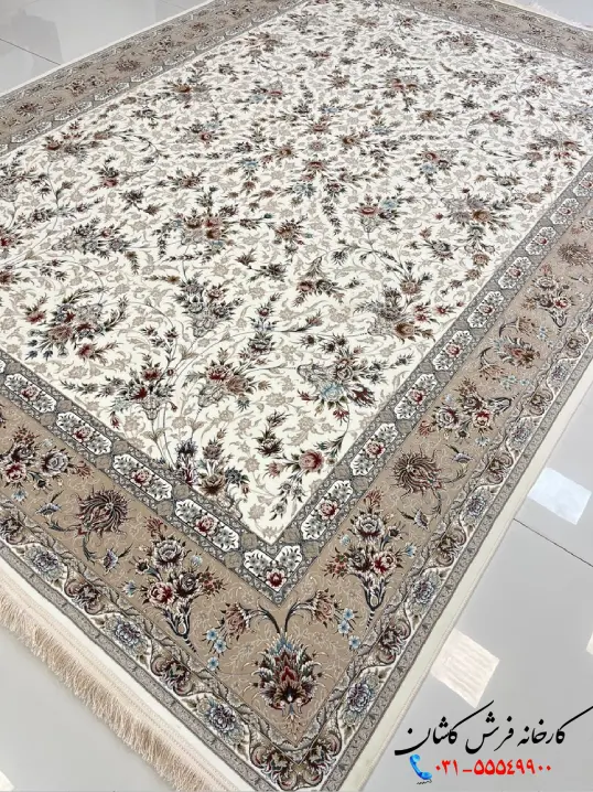 فرش کرم ۱۲۰۰ شانه طرح مه گل