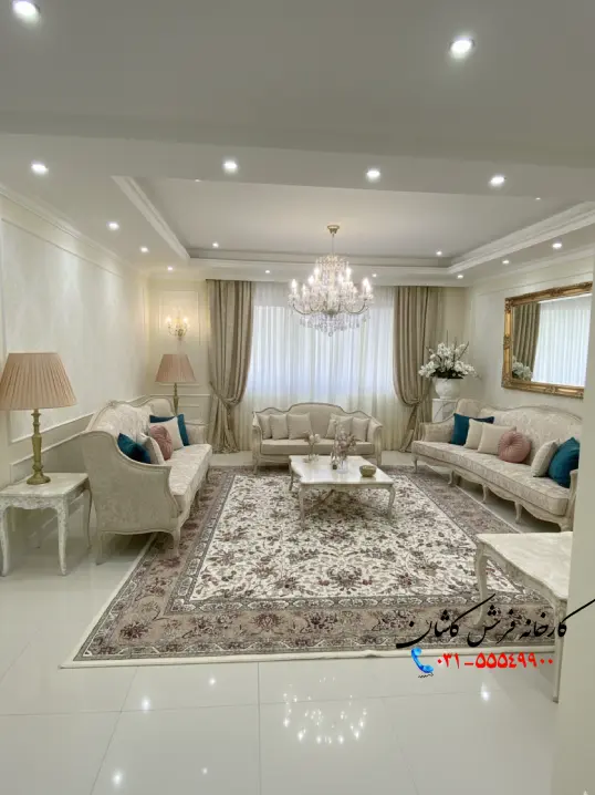 برای اینکه چیدمانی هماهنگ داشته باشید، بهتر است سراغ مبلمانی با پارچههای ساده و رنگهای ملایم مثل استخوانی، طوسی فیلی یا حتی نسکافهای بروید تا با حاشیه فرش همخوانی پیدا کند. از آنجایی که طرح فرش افشان است، میتوانید مبلها را به صورت گرد یا ال هم بچینید و برای روح بخشیدن به فضا، رنگ کوسنها را با گلهای رنگی داخل فرش (مثل آبی یا صورتی چرک) ست کنید. پردههای ساده با والانهای مخمل تکرنگ و میزهای جلومبلی چوبی به رنگ روشن یا خودرنگ، مکملهای بسیار خوبی هستند که اجازه میدهند ظرافت ۱۲۰۰ شانه فرش کاملاً به چشم بیاید و فضا شلوغ و خستهکننده نشود.