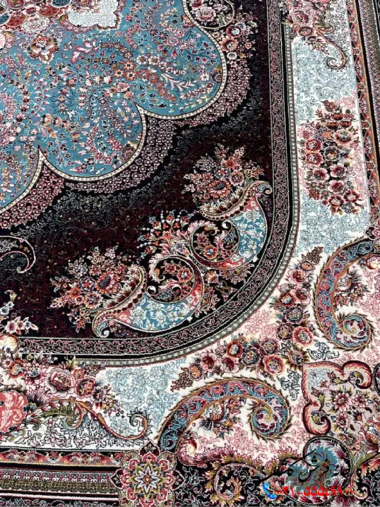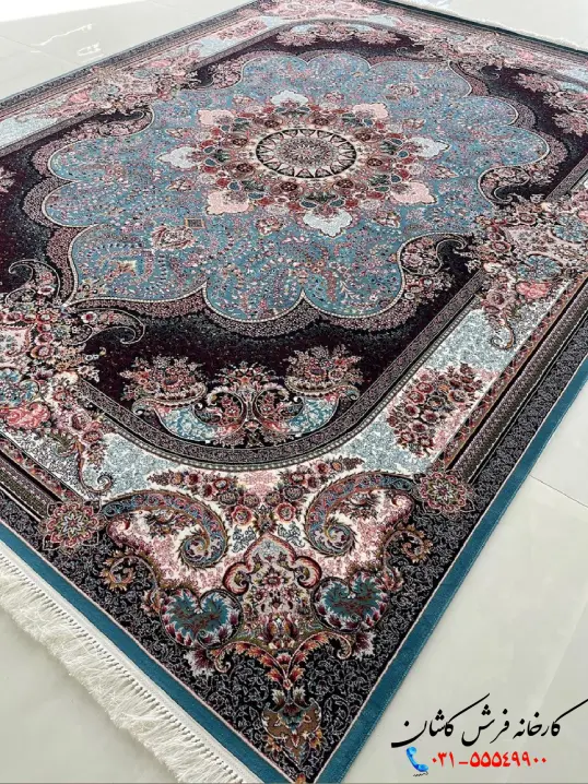 فرش مدل نسترن، طرحی کلاسیک با ساختار لچک و ترنج مرکزی دارد که از ترکیب رنگهای سرد و تیره برای ایجاد تضاد استفاده میکند. رنگ اصلی بخش مرکزی، آبی فیروزهای روشن است که با یک ترنج دایرهای بزرگ در میان و گلهای شاهعباسی صورتی و کرم تزیین میشود. حاشیه و زمینهی بیرونی فرش با رنگ سرمهای سیر پوشانده میشود تا نقش و نگارهای روشن میانی بیشتر به چشم بیایند. در چهار گوشه فرش، نقشهای اسلیمی و گلبوتههای رنگی قرار میگیرند که با حاشیه پهن کناری هماهنگی دارند و تعادلی بصری میان بخشهای تیره و روشن ایجاد میکنند. در صفحه فرش آبی میتوانید همه محصولات آبی رنگ را ببینید.